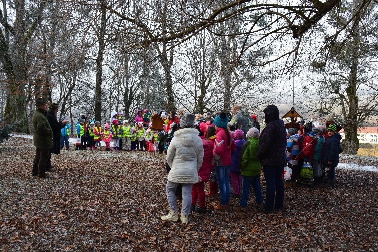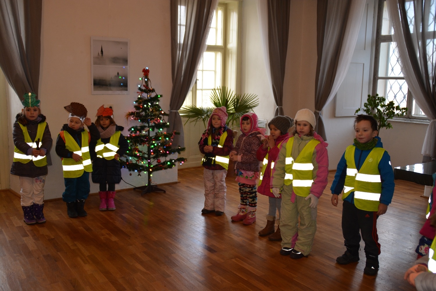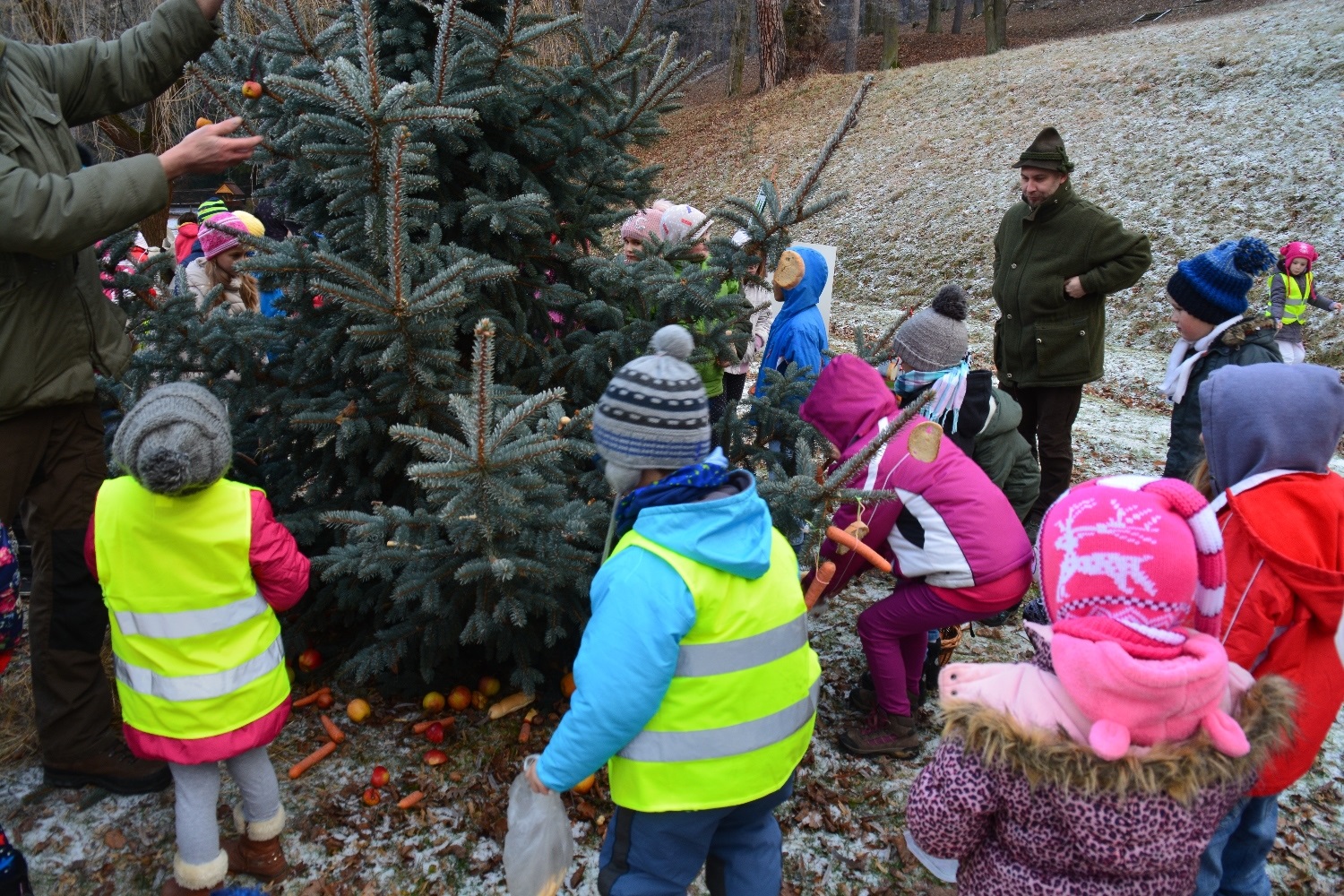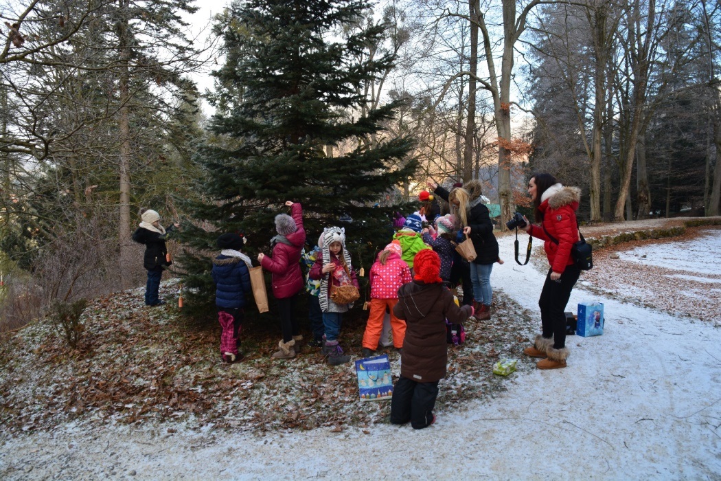 Všetci spoločne - škôlkári a pani učiteľky, školáci i my, zamestnanci - sme vyzdobíli 20.12.2016 stromček v parku pri kaštieli pripravenými dobrotami - jabĺčkami, zemiakmi, suchým chlebíkom, orieškami, mrkvičkami. A tak aj zvieratká mali svoj vianočný stromček. Vtáčikom nasypali deti do kŕmidiel slnečnicu a iné dobroty. Pre rybky v jazierku bolo pripravené krmivo. Nezabudli sme však ani na zvieratká, ktoré žijú v lese a do kŕmidiel im dali seno. Vo výstavných priestoroch nasledoval pri teplom čaji a koláčiku program, ktorý si deti pripravili.