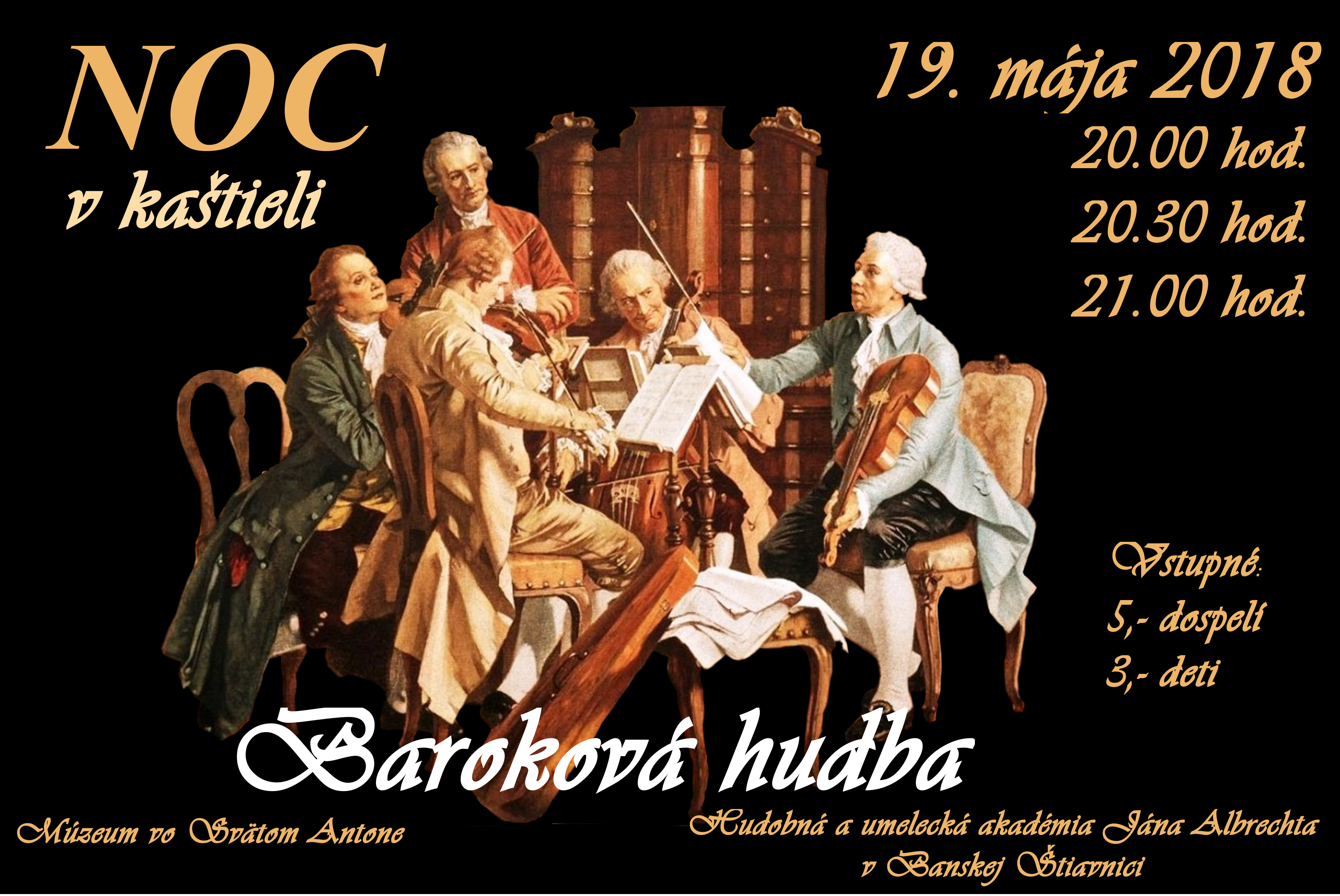 Vo večerných hodinách dňa 19. mája 2018 (sobota) sa otvorili krásne salóny a rozozneli sa ľúbivé tóny barokovej hudby v podaní absolventov Hudobnej a umeleckej akadémie Jána Albrechta z Banskej Štiavnice. Akú hudbu počúvala šľachta nám predviedli Jozef Čuban (gitara), Ľubomír Glovecký (gitara), Lidia Avila Parra (husle) a Yuk Fan Chan (gitara). V poľovníckej jedálni zas Milan Skokan zo Sebechlieb zahral na heligónke hontianske pesničky na ľudovú nôtu.