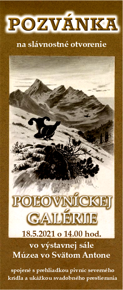 V kaštieli sme sviatok múzejníkov oslávili sprístupnením Poľovníckej galérie vo výstavnej sále. Obrazy s poľovníckou tematikou doteraz uložené v depozite múzea si našli svoje nové miesto a môžu sa ukázať v plnej kráse všetkým návštevníkom. Vystavené sú obrazy známych umelcov zo Slovenska ale i zahraničia (L. Sulík, K. Šovánka, F. Šesták, A. Djuračka, X. F. Pausinger, O. Recknagel a iní), ktorí svoj život venovali zachyteniu zveri, poľovačiek a prírody na plátne. Slávnostné otvorenie výstavy začalo netradične na nádvorí (z dôvodu pandemickej situácie) a sme veľmi radi, že sme sa po dlhom čase mohli stretnúť s kamarátmi a partnermi múzea, ale aj s bývalými kolegami.