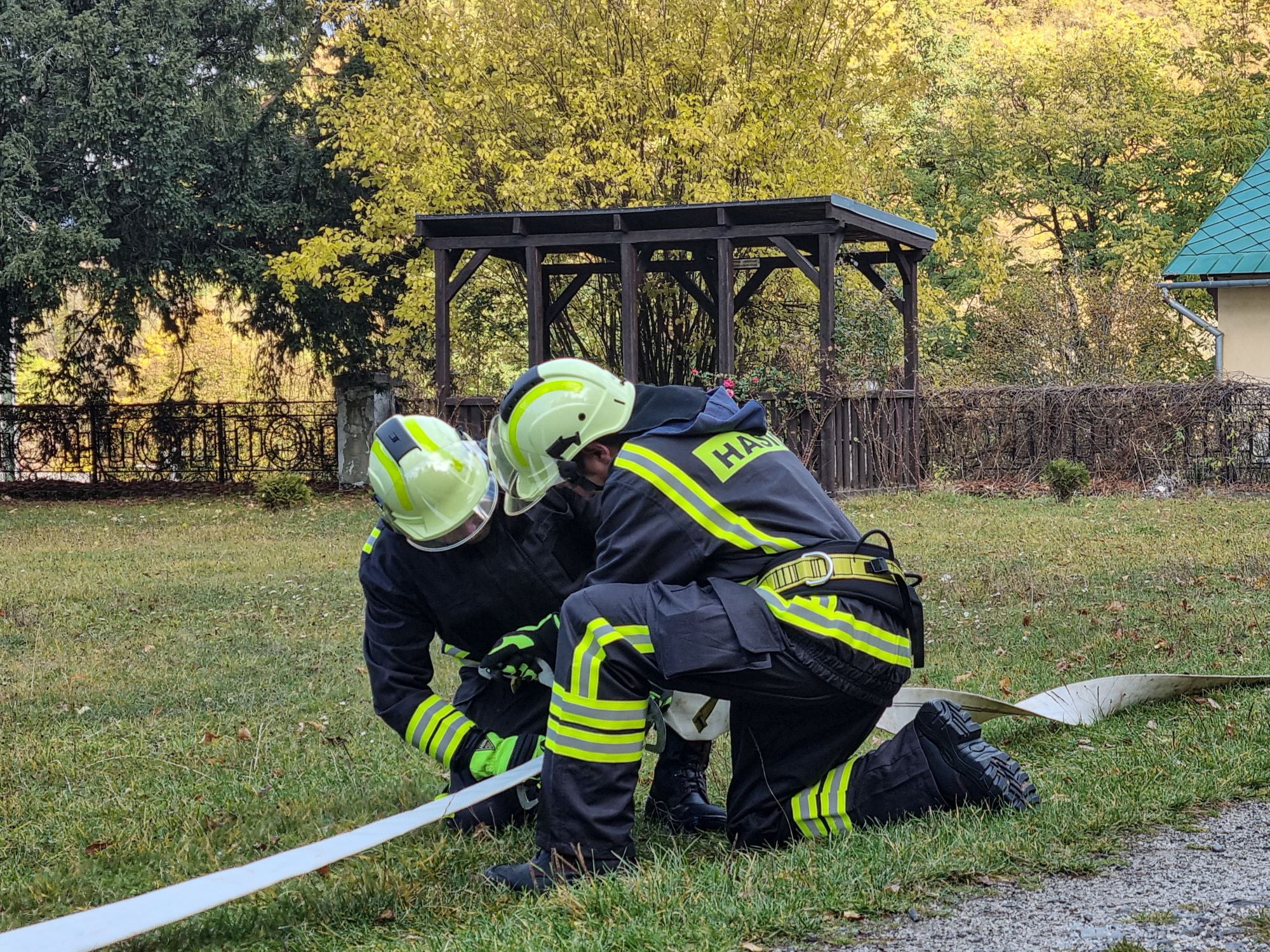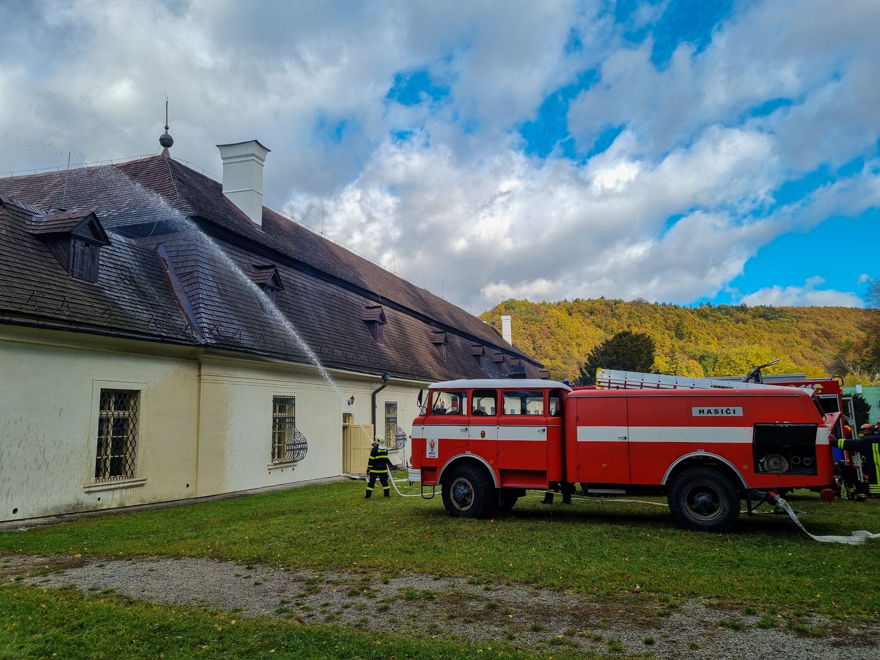 Sobotné dopoludnie toho bolo pekným príkladom, keď DHZO spolupracovali a taktickým cvičením si upevnili svoje teoretické a praktické vedomosti. Zásah smeroval na strechu a povalu východného krídla kaštieľa, v interiéri sa vykonala predlekárska pomoc, ktorú pomáhali zabezpečovať figurantky a z južnej a východnej chodby kaštieľa sa evakuovali predmety z pomocného zbierkového fondu múzea, tiež mobiliár.